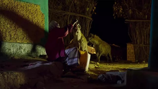 This is a far more contemporary offering. Who is the Harar Hyena Man? He’s a local character in the Eastern city of Harar, who calls nightly to attract these wild creatures. He then feeds the hyenas, to the joy of fascinated onlookers.